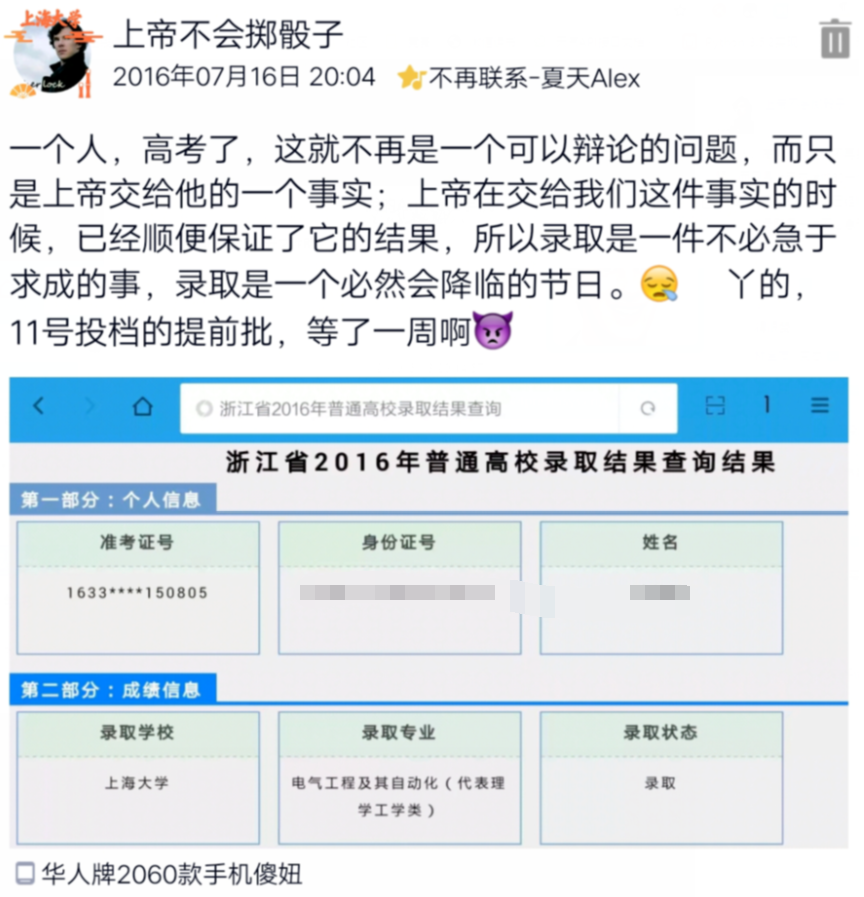 2016年6月9日,我结束了高考。6月10日,第一次来到上海大学。6月11日,参加上海大学高校专项计划的学校复试。复试科目为数学和英语,记得当初数学卷子的难度尚可,至于英语,上海的英语教育水平果然不是盖的。